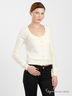 Оригинальный жакет с длинными рукавами и округлым вырезом горловины. Изделие с застежкой на пуговицы по всей длине.