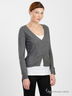 Оригинальный жакет с длинными рукавами и V-образным вырезом горловины. Модель с застежкой на пуговицы по всей длине и двумя накладными карманами спереди.