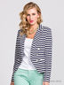 Жакет с длинными рукавами и отложным воротником. Модель приталенного кроя дополнена застежкой на пуговицу спереди. Отличный вариант на каждый день.