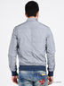 Детали: воротник стойка, длинный свободный рукав с небольшой трикотажной бейкой, два прорезных кармашка на молнии, подол так же посажен на резинку, оригинальная расцветка в полоску. стильный принт на полочке, стильная металлическая вставка на спинке в виде креста.