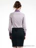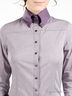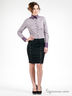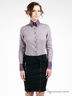 Женская рубашка приталенного кроя. Отложной воротник. Застегивается на клепки с имитацией пуговиц. Манжеты и рукава так же застегиваются на клепки. Посажен на кокетку. На полочке и спинке выточки.