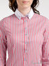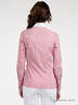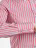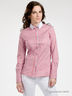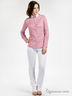 Блузка рубашечного кроя в бело-розовую вертикальную полоску. Отложной американский воротник на пуговицах.
