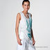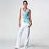 Белая трикотажная футболка на широких бретелях с принтом на полочке. Оригинальное исполнение выреза горловины: декоративная завязка.
