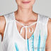 Белая трикотажная футболка на широких бретелях с принтом на полочке. Оригинальное исполнение выреза горловины: декоративная завязка.