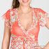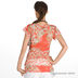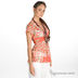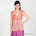 Приталенная женская футболка из полупрозрачной сетчатой ткани, стрейч. V-образный вырез с нахлестом. Короткие рукава. Отрезной лиф. Тоненький декоративный поясок. Манжеты на рукавах и по низу изделия.