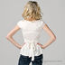 Модная удлиненная футболка с коротким рукавом и круглым вырезом. Выполнена из тонкого трикотажа. Спереди пояс вшит, сзади завязывается на бант. Прекрасный выбор для ежедневного городского гардероба.
