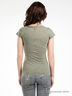 Приталенная трикотажная футболка. Круглая горловина. Короткий рукав. На полочке брошь.