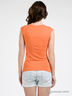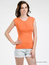 Яркая оранжевая футболка из мягкого трикотажа. На полочке планка-застежка на пуговицах.