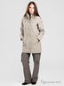 Женская куртка бежевого цвета. Дизайн и функциональность этого изделия делают его оптимальными для повседневного использования. Куртка удлиненного кроя с тонким слоем утеплителя выполнена из двухслойного высокотехнологичного материала с мембраной CeplexActive. Капюшон с козырьком не отстегивается, регулируется по ширине резинкой и ремешком с липучкой. Фронтальная застежка на молнию и дополнительную планку с кнопками. Функциональные карманы: два передних кармана, один внутренний карман на липучке, один внутренний карман на молнии с отверстием для провода наушников. Дополнительные вязаные манжеты рукавов. Сзади разрез. Тонкий шелковистый подклад. Декоративная вышивка в виде логотипа марки.