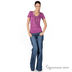 Женская майка прямого кроя из нежного на ощупь трикотажа. Круглая горловина. Короткие рукава. Полочка декорирована вышивкой и бусинами.