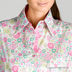 Женская рубашка с цветочным принтом из тонкой хлопковой ткани с отделкой. Спереди и сзади выполнены рельефные вытачки, благодаря которым рубашка идеально садится по фигуре. Классический воротник, на планке застежка на контрастные пуговицы. На рукавах манжет с отворотом застёгивается на две пуговицы, что добавляет рубашке некую изюминку. Рубашка в стиле CASUAL, очень элегантна и изысканна. Ее можно носить как с костюмом, так и с повседневной одеждой.