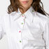 Замечательная рубашка из хлопка белого цвета. Манжета рукава с отделкой в яркую полоску, с пуговицами. Тонкая качественная ткань из хлопка обеспечивает идеальную посадку по фигуре.