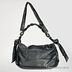 Сумка черного цвета с застежкой-клапаном на магнитной кнопке. Дополнительная застежка основного отделения на молнию. Короткая ручка. Имеется наплечный ремень. Внутри отделение, разделенное средником на молнии. Карманы для документов и мобильного телефона. Декоративная бахрома.
