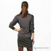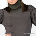 Туника-платье из комбинированного трикотажа. Нижняя часть, представляющая юбку, выполнена и широкой резинки, которая плотно облегает фигуру. Такая же эластичная широкая резинка использована для манжет рукавов и высокого двойного воротника-гольф.