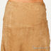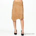 Стильная юбка из натуральной замши песочного цвета. Посадка чуть ниже талии. Застежка на потайную молнию сбоку. Низ юбки ассиметричный, фигурный.
