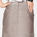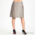 Юбка из легкой серебристой джинсы, посаженная по фигуре. Отрезной пояс с двумя широкими шлевками. Два передних кармана, два задних. Спереди декоративная складка. Застегивается на молнию и пуговицу сзади.