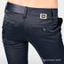 Бриджи имеют два боковых врезных кармана, задние карманы имитированы, представлены листочками с застежкой на пуговицу. Ткань низкоэластичная, гладкой шелковистой фактуры. Застежка спереди на потайной крючок и молнию. Пояс дополнен шлевками для ремешка.