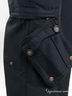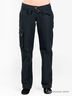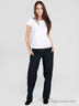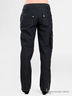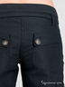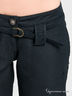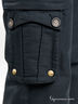 Женские брюки черного цвета, сочетающие в себе дизайн и функциональность. Брюки прямого кроя из прочной смесовой хлопковой ткани в рубчик. Без подклада. Застежка на пуговицу и молнию. Два передних прорезных кармана на молнии. На правой брючине - съемный накладной карман на пуговицах (пристегивается при помощи скрытой молнии и двух кнопок). Сзади два накладных кармана с имитацией застежки на пуговицу. В шлевки на бедрах продет пояс с пряжкой.