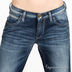 Прямые брюки из эластичной джинсы. Посадка пояса чуть ниже линии талии, есть шлевки под ремень. Штанины прямые от бедра. Длинна 3/4.