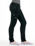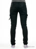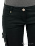 Женские брюки оригинального кроя из плотной ткани черного цвета.