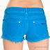Короткая модель прямого кроя застегивается на пуговицу и молнию. К поясу пришиты петли для ремня. Три передних кармана, два задних карман. Декоративная бахрома по низу брючин, металлические элементы на заднем кармане.