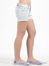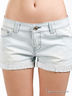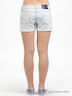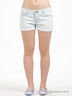 Мини-шорты из светлого денима. Классический пятикарманный крой, задние карманы декорированы вышивкой. По нижнему краю брючины вышиты пайетками и бисером.
