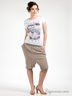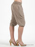 Шелковые шорты-афгани. На поясе посажены на многорядную резинку. Сзади на талии дополнительная широкая резинка со сборками. Два передних кармана. Низ брючин посажен на толстые резинки со сборками.