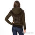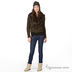 Вязка комбинированная, сочетающая в себе крупную резинку и рельефный узор. Капюшон выполнен гладью. Изделие имеет укороченный силуэт, внизу "посажено" на широкую резинку-манжету.