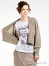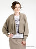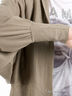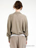 Трикотажный джемпер кроя летучая мышь. Края низа изделия, полочки и воротник выполнены из двойной трикотажной ткани с отстрочкой. Манжеты на трикотажной резинке. На спине декоративный бант.