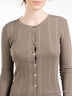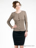 Трикотажный джемпер прямого кроя. Круглая горловина. Застегивается на перламутровые пуговицы спереди. Манжеты ажурные. Горловина и низ изделия на трикотажных резинках.