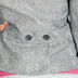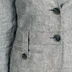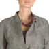 Женский приталенный пиджак из плотного льна. Воротник стойка на пуговицах. Посажен на отрезной пояс с двумя декоративными шлевками спереди. Два передних кармана. На спинке по низу изделия вырез с нахлестом.