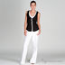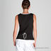 Красивый топ с имитацией "два в одном". Сверху черный жилет из трикотажа, планка и окантовка выреза горловины выполнена из белого хлопка. По окружности выреза сборка на завязке, спереди топ застегивается на пуговицы.