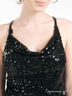 Трикотажный топ прямого кроя. Три тонкие регулируемые лямки из ворсистой ткани. Спина открытая. Топ полностью украшен паетками, нашитыми на сетчатую ткань.