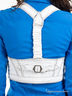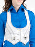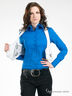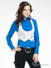 Жилет асимметричного покроя. Швы с контрастной окантовкой. Глубокий округлый V-образный вырез. Два декоративных кармана на молнии. Сзади - регулируемый хлястик.