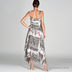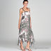 Легкий струящийся сарафан с эффектом неровной линии подола. Линия талии завышена, сзади на спине широкая резинка.