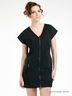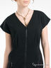 Приталенное женское платье. V-образый вырез. Застегивается на молнию спереди. Отрезной пояс. Спереди имитация карманов с молниями. На спинке выточки.