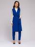Жилет насыщенного синего цвета должен быть в гардеробе каждой деловой леди. Удлиненный фасон и пояс визуально вытянут ваш силуэт.