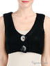 Детали: v-образный вырез горловины, застежка на две крупные пуговицы, низ изделия дополнен резинкой в рубчик