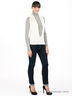 Жилет оригинального покроя с глубокими вырезами и лямкой на шее. Полушерстяной трикотаж средней плотности и прямой покрой. Застежки на пуговицы. Идеально подходит для повседневной носки.