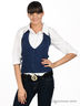Жилет оригинального покроя с глубокими вырезами и лямкой на шее. Полушерстяной трикотаж средней плотности и прямой покрой. Застежки на пуговицы. Идеально подходит для повседневной носки.