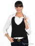 Жилет оригинального покроя с глубокими вырезами и лямкой на шее. Полушерстяной трикотаж средней плотности и прямой покрой. Застежки на пуговицы. Идеально подходит для повседневной носки.