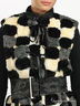 Оригинальный меховой жилет, стильный и уютный. Воротник стойка. Завязывается спереди на атласные ленты. Два прорезных кармана. В комплект входит широкий жаккардовый пояс с металлической пряжкой.