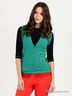 Детали: V-образный вырез горловины, без рукавов, имитация передних карманов, сетчатый подклад выглядывающий наружу, плечи украшены декоративными элементами