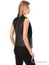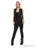 Женский стильный жилет с лацканом, плечи декорированы погонами, переходящими в шифоновый шарф.