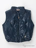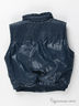 Жилет прямого силуэта из шелковистой плащевки застегивается на молнию. Флисовый подклад, утеплитель синтепон. Ворот-стойка, низ изделия - трикотажная резинка. Изделие декорировано оборками.