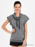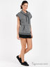 Детали: широкий ворот-хомут на кулиске; проймы и низ изделия окантованы трикотажной резинкой; карман - кенгуру; на спине вертикальный шов