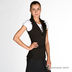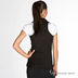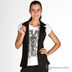 Удлиненный жилет с застежкой на пуговицы. Скроен по фигуре клиньями. Выполнен эффектный воротник с лацканами, украшенный брошью-цветком с цепочкой. Отлично сочетается с классической прямой юбкой или брюками.