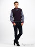 Замечательный жилет с V-образным вырезом горловины. Низ изделия и прорези для рук окантованы в рубчик. Свободного покроя. Жилет декорирован темно-синим кантом, текстиль украшен вязкой косичками.