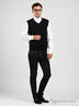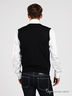 Классический однотонный жилет с V-образным вырезом горловины. Свободного покроя. Низ изделия и прорези для рук окантованы в рубчик.