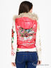 Детали: застегивается на молнию и клапан с пуговицами; два кармана на кнопках; низ изделия дополнен трикотажной резинкой; капюшон утеплен мехом; декорирован вышивками и аппликациями